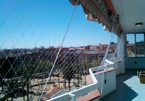 Que el balcón cuente con toldo no impide la instalación de una red de protección, ni perder la funcionalidad del toldo. La red quedara un poco inclinada, colocandola en la parte interior del toldo, desde el techo a suelo o barandilla, permitiendo el uso normal del toldo.